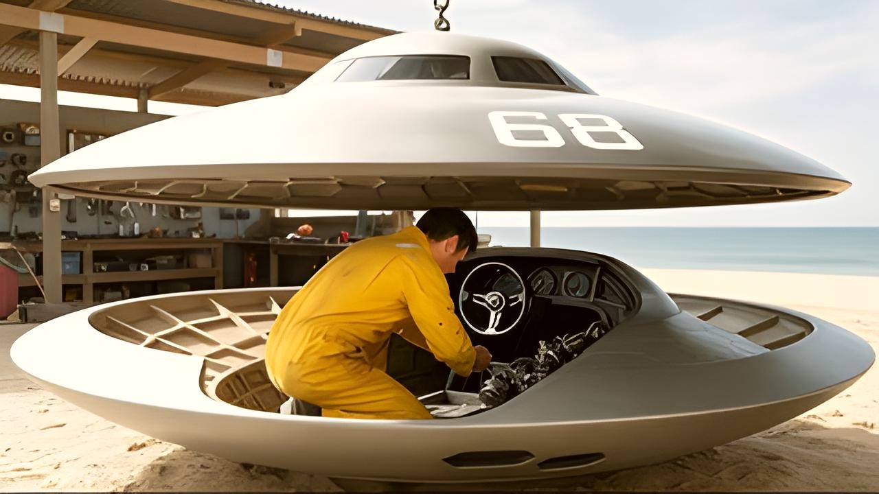 Μετά, ο άντρας ξεκινά τον κινητήρα. Το σκάφος κινείται αργά στην επιφάνεια του νερού. Οι θεατές το χειροκροτούν. Είναι μια στιγμή χαράς και υπερηφάνειας για τον δημιουργό. Το σκάφος μοιάζει να λειτουργεί όπως ένα κανονικό σκάφος, παρόλο που έχει περίεργο σχήμα.