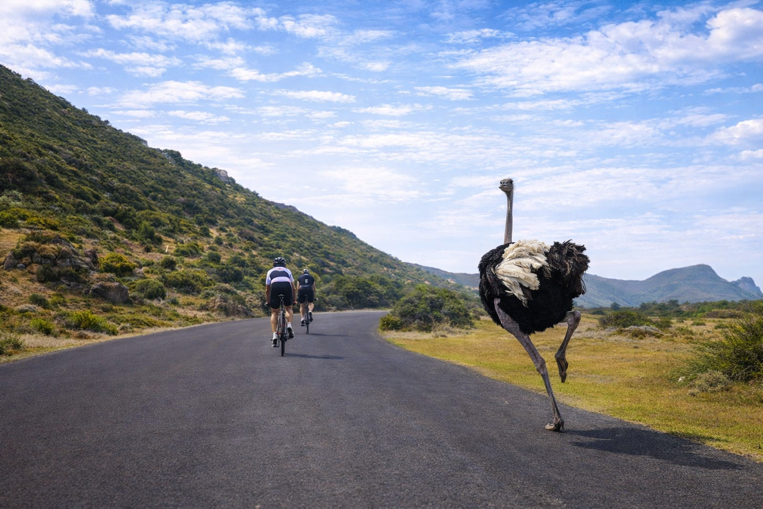 Οι ποδηλάτες στην αρχή δείχνουν να απολαμβάνουν απλά μια καθημερινή βόλτα. Τίποτα δεν προμήνυε ότι θα βρεθούν αντιμέτωποι με μια στρουθοκάμηλο σε αγωνιστική διάθεση. Όταν το πουλί αρχίζει να τρέχει δίπλα τους, η κάμερα καταγράφει την έκπληξη και το χιούμορ της κατάστασης.