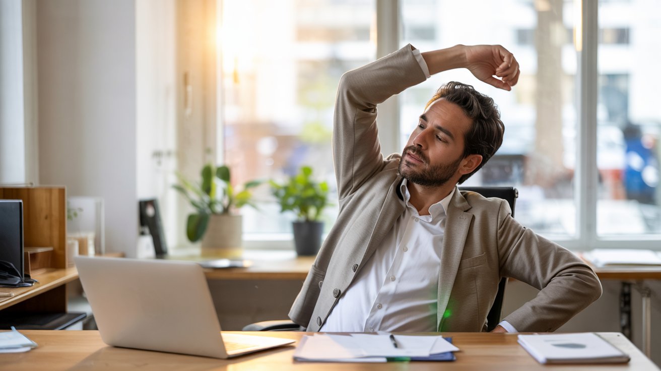 Συμβουλή: 5 λεπτά stretching κάθε ώρα μειώνουν το άγχος και τον πόνο, βοηθώντας σε να παραμείνεις συγκεντρωμένος και παραγωγικός.