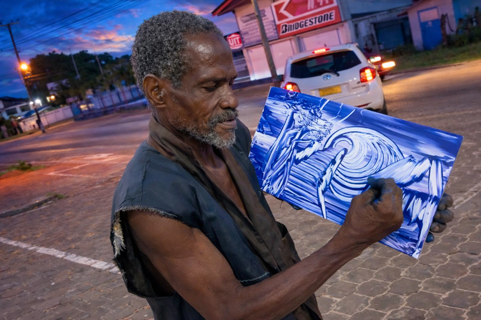 Ο καλλιτέχνης δεν παρουσιάζεται με λόγια και εξηγήσεις. Του δίνεται λίγος χώρος και λίγος χρόνος. Μέσα σε ελάχιστα λεπτά, μπροστά στα μάτια σου, η εικόνα αποκτά ψυχή και λεπτομέρειες. Δεν υπάρχει καμία προετοιμασία που βλέπεις· όλο το έργο ξετυλίγεται μπροστά σου, σαν να έχεις μια μαγική κάμερα που αποκαλύπτει τη δημιουργία από το τίποτα.