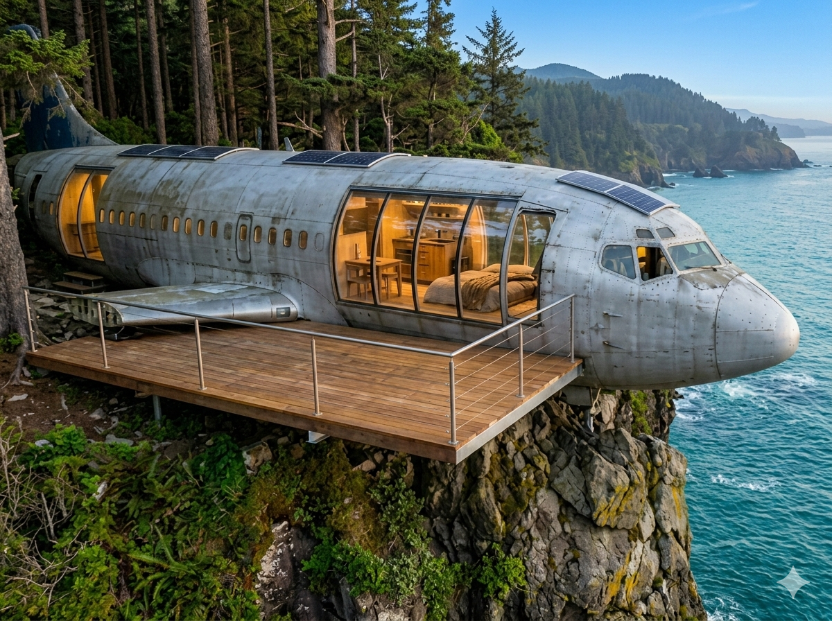 Η ιδέα του να ζει κανείς σε ένα αεροπλάνο μπορεί να ακούγεται σαν σενάριο ταινίας, αλλά για ένα δημιουργικό ζευγάρι έγινε η απόλυτη πραγματικότητα. Σε μια από τις πιο ιδιαίτερες κατασκευές που έχουν καταγραφεί, ένα εγκαταλελειμμένο αεροσκάφος μεταφέρθηκε και τοποθετήθηκε στην άκρη ενός γκρεμού, με θέα τον ωκεανό. Το έργο αυτό δεν αφορούσε απλώς τη μετακίνηση ενός σκάφους, αλλά μια ολοκληρωτική ανακατασκευή που μετέτρεψε το ψυχρό μέταλλο σε έναν ζεστό, μοντέρνο και πλήρως λειτουργικό χώρο διαβίωσης.