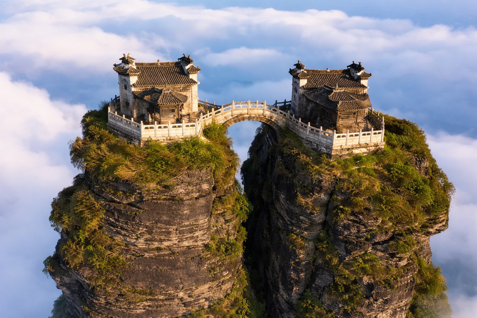 Υπάρχουν μέρη που δεν μοιάζουν με τίποτα άλλο στον κόσμο. Το όρος Fanjing, στην επαρχία Guizhou της Κίνας, είναι ένα από αυτά. Γνωστό και ως «πραγματικό Sky City», μοιάζει σαν μια πόλη που αιωρείται πάνω από τα σύννεφα, με απόκρημνες κορυφές και θέα που κόβει την ανάσα.