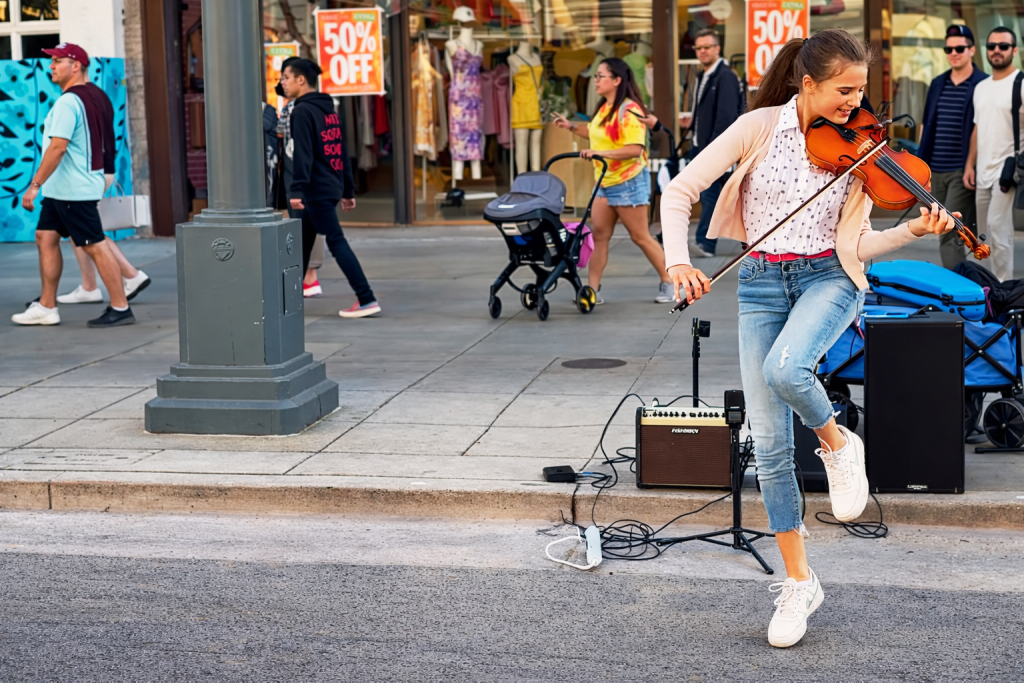 Αυτές οι μικρές παραστάσεις στον δρόμο μας θυμίζουν ότι η ομορφιά βρίσκεται στις απλές στιγμές. Μια ταλαντούχα κοπέλα, ένα βιολί και μια τυχαία συνάντηση αρκούν για να φτιάξουν τη διάθεση εκατοντάδων ανθρώπων. Η μουσική έχει την ιδιότητα να μας κάνει να ξεχνάμε για λίγο τα προβλήματά μας και να συνδεόμαστε με τους γύρω μας. Η Καρολίνα και η μικρή της φίλη μας χάρισαν ένα μάθημα χαράς και αυθορμητισμού, αποδεικνύοντας ότι το ταλέντο όταν μοιράζεται, πολλαπλασιάζεται.