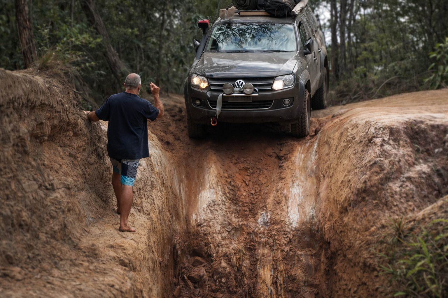 Μόλις οι μπροστινοί τροχοί πατήσουν στο επίπεδο έδαφος και το πίσω μέρος ξεκολλήσει από την πλαγιά, η ανακούφιση είναι εμφανής. Είναι μια μικρή νίκη του ανθρώπου και της μηχανής απέναντι σε ένα από τα πιο δύσκολα σημεία του Cape York.