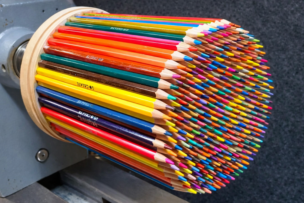 Η τέχνη του τόρνου συνήθως περιλαμβάνει κομμάτια ξύλου που μεταμορφώνονται σε μπολ ή διακοσμητικά. Ωστόσο, υπάρχει ένας δημιουργός που αποφάσισε να πάει την τέχνη αυτή σε ένα άλλο επίπεδο. Χρησιμοποιώντας εκατοντάδες, ίσως και χιλιάδες χρωματιστά μολύβια, δημιουργεί αντικείμενα που μοιάζουν με ουράνιο τόξο παγωμένο στο χρόνο. Αυτή η διαδικασία δεν είναι μόνο εντυπωσιακή οπτικά, αλλά απαιτεί τρομερή ακρίβεια και προσοχή.