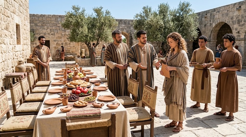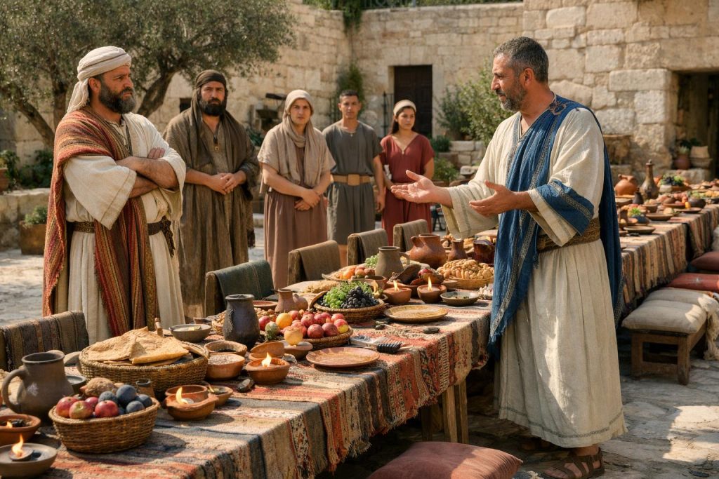 Ο καλεσμένος δεν έβαζε το δείπνο σε προτεραιότητα. Αντί να τιμήσει την πρόσκληση, προτίμησε να ασχοληθεί με κάτι άλλο. Η ουσία της ιστορίας δεν είναι το χωράφι. Είναι η αδιαφορία.