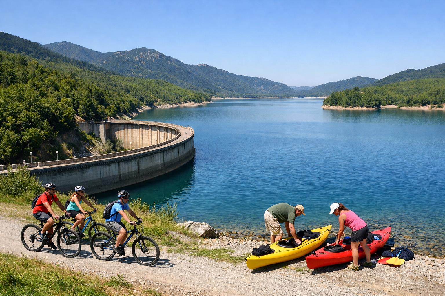 Μπορείτε να κάνετε ποδηλασία γύρω από τη λίμνη, σε διαδρομές που συνδυάζουν θέα και άσκηση. Αν αγαπάτε το νερό, το καγιάκ και το κανό είναι από τις πιο δημοφιλείς επιλογές.
