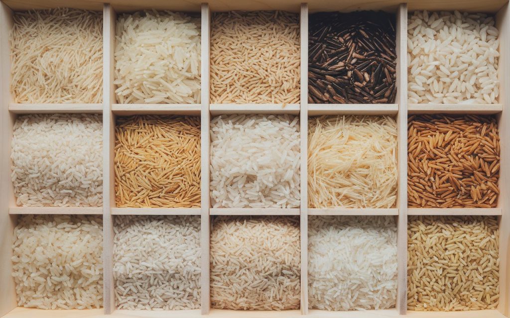 - Μπασμάτι ρύζι: Γνωστό για το άρωμά του και την ελαφριά υφή. Χρησιμοποιείται συχνά σε ινδικά και μεσανατολικά πιάτα.