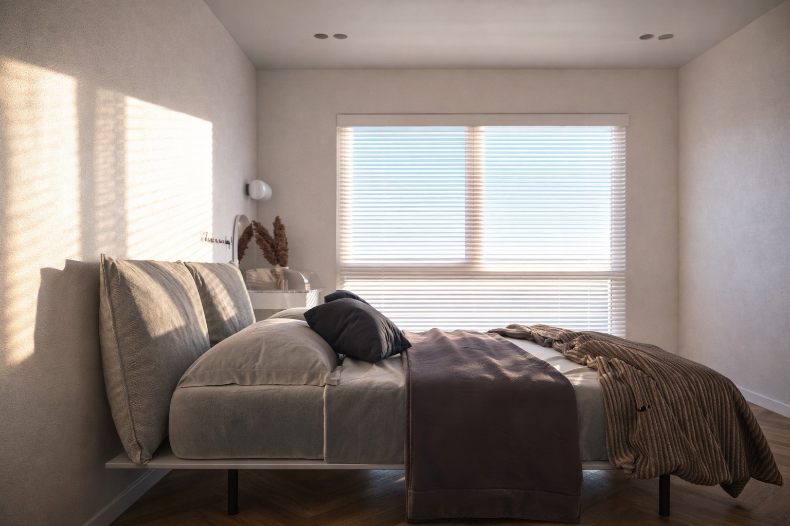Οι ανοιχτές αποχρώσεις και η απουσία «οπτικού θορύβου» δημιουργούν την ψευδαίσθηση μεγαλύτερου χώρου. Οι καθαρές επιφάνειες αντανακλούν το φως. Το σπίτι αναπνέει.