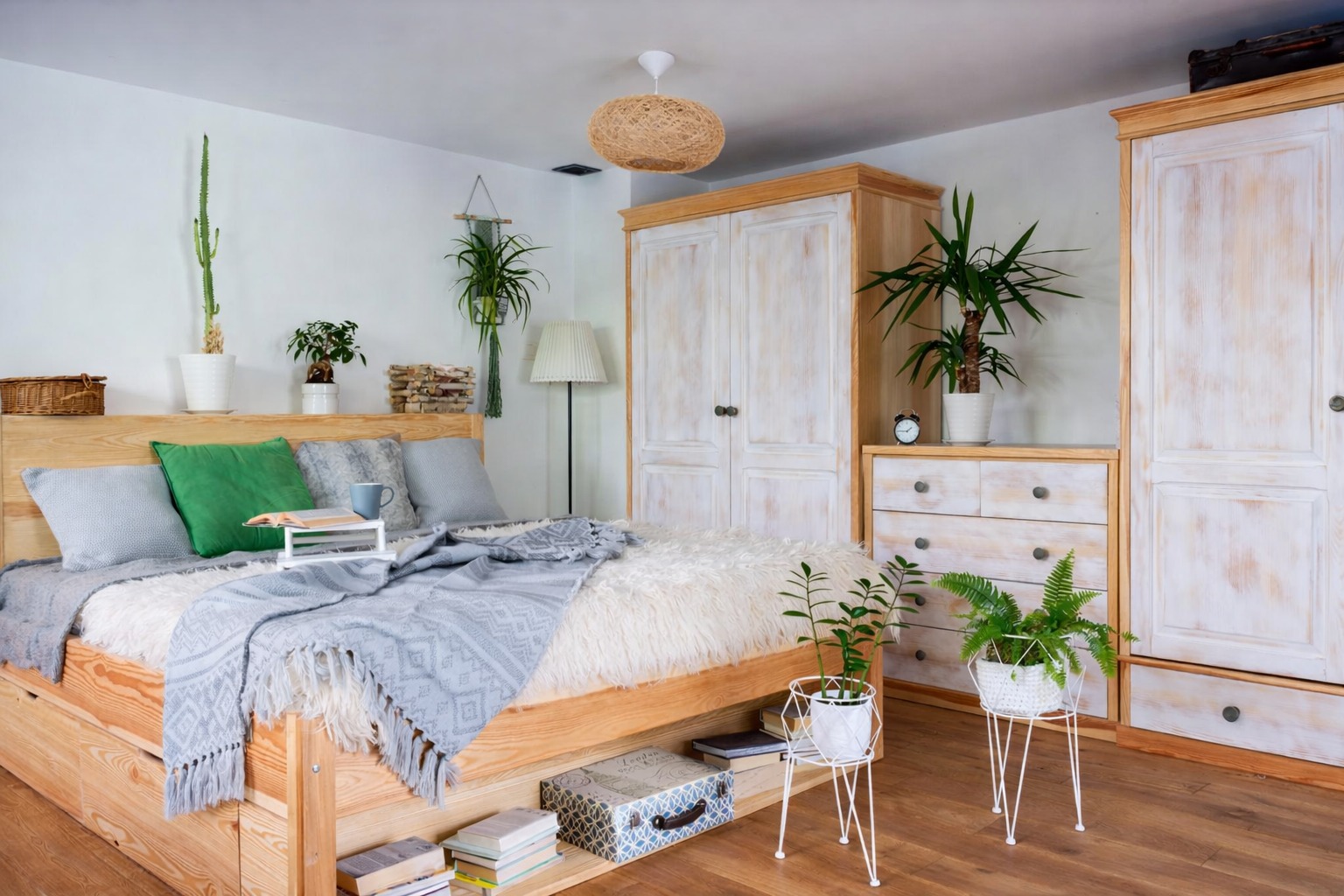 Το boho μπορεί επίσης να λειτουργήσει, αλλά χρειάζεται στρατηγική. Αν περιορίσετε τα χρώματα και κρατήσετε τους τοίχους ουδέτερους, τότε τα διακοσμητικά στοιχεία θα δώσουν χαρακτήρα χωρίς να μικρύνουν το δωμάτιο.
