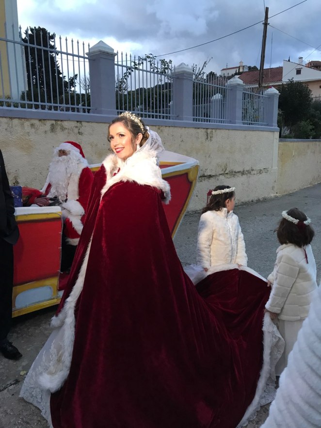 Το έλκηθρο του Santa το έσερνε ένας τάρανδος η πανέμορφη νύφη ζεστάθηκε με την κάπα του Santa και ο πανευτυχής γαμπρός τους υποδέχτηκε στα σκαλιά της Εκκλησίας ενώπιον συγγενών, φίλων και όλου του χωριού που έζησε μαζί τους το Παραμύθι της Πρωτοχρονιάς!