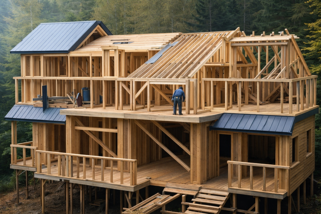 Ο άντρας του βίντεο ξεκίνησε την κατασκευή σε μια άγρια, απομονωμένη περιοχή. Δεν στόχευε σε μια απλή καλύβα για προσωρινή χρήση. Το σχέδιό του ήταν ξεκάθαρο: να δημιουργήσει ένα κανονικό, μεγάλο σπίτι από ξύλο και φυσικά υλικά.
