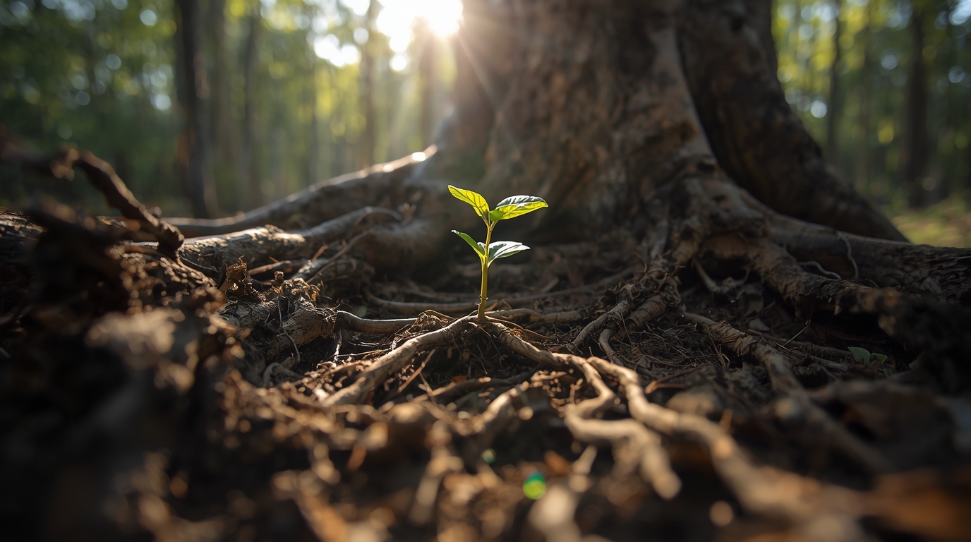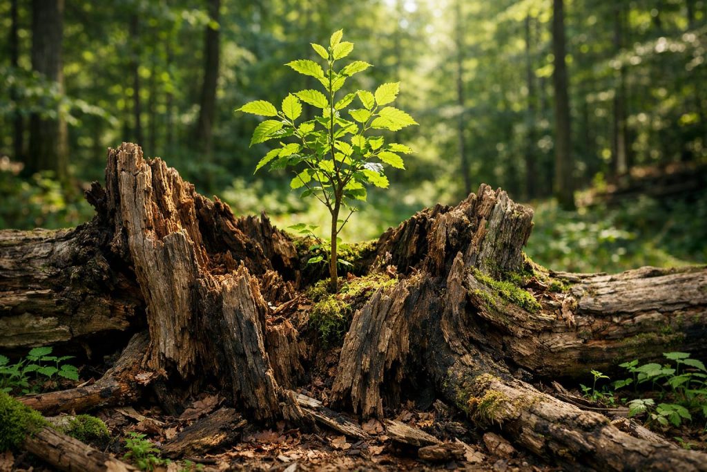 Όταν κοιτάξουμε μια φωτογραφία σαν αυτή, τα πρώτα μας συναισθήματα μπορεί να είναι λύπη και απογοήτευση. Ο πεσμένος κορμός φαίνεται σαν κάτι που έχει ολοκληρώσει τον κύκλο του και δεν έχει τίποτα άλλο να προσφέρει. Ωστόσο, αν ρίξουμε μια πιο προσεκτική ματιά, βλέπουμε κάτι εκπληκτικό. Από τον παλιό κορμό αναδύεται ένα νέο δέντρο, γεμάτο ζωή, έτοιμο να ακολουθήσει τον δικό του δρόμο στον κόσμο.