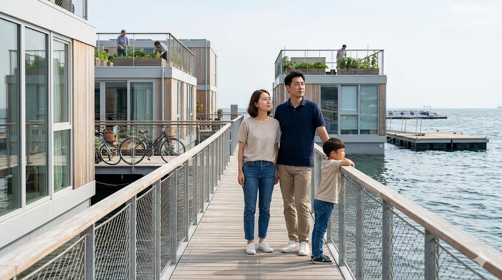 Η Oceanix Busan είναι ένα πρωτοποριακό αστικό project που δημιουργείται στη Νότια Κορέα, σε συνεργασία με τον ΟΗΕ και την εταιρεία Oceanix. Ο βασικός στόχος είναι ξεκάθαρος: να δημιουργηθεί μια βιώσιμη πόλη που επιπλέει στο νερό και μπορεί να αντέξει ακραίες κλιματικές αλλαγές. Δεν μιλάμε για μια απλή κατασκευή πάνω στη θάλασσα, αλλά για μια πλήρως λειτουργική κοινότητα με σπίτια, δρόμους και υποδομές.