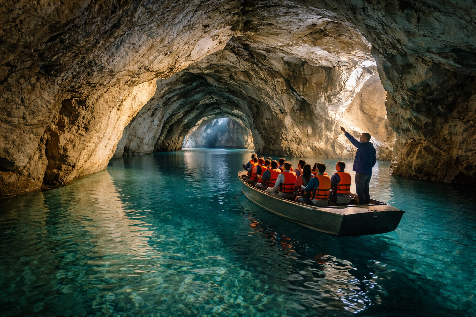 Οι επισκέπτες μεταφέρονται με μικρές βάρκες που γλιστρούν αθόρυβα στα κρυστάλλινα νερά. Δεν υπάρχουν βιαστικές κινήσεις, ούτε έντονοι ήχοι. Μόνο το απαλό παφλασμό του νερού και η φωνή του ξεναγού.