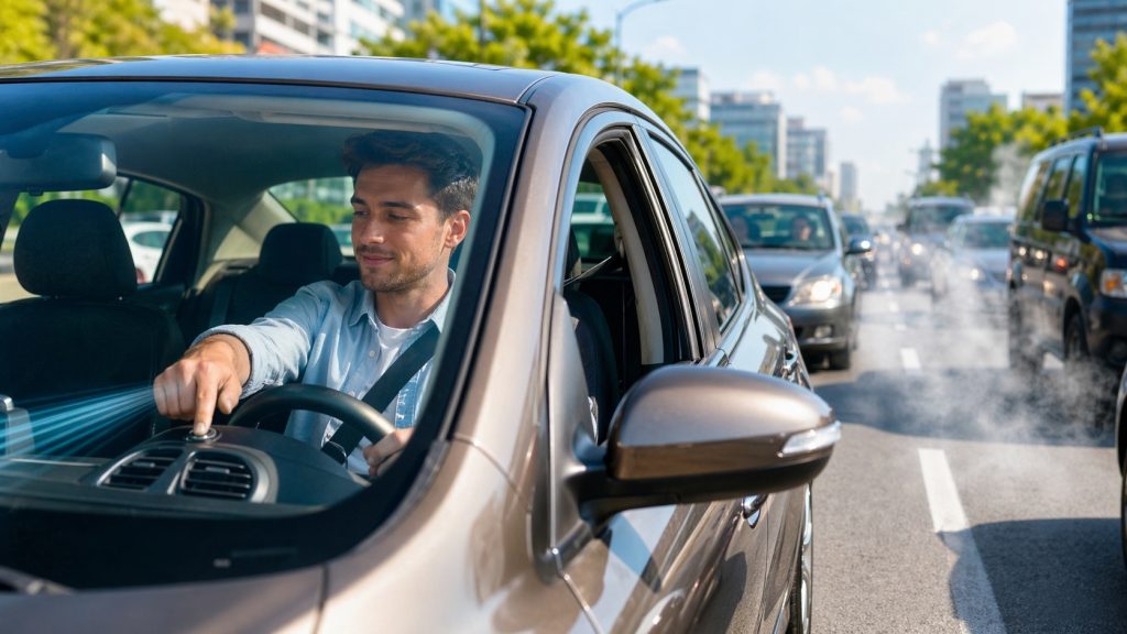 - Σε κυκλοφοριακή συμφόρηση: Όταν βρίσκεστε σε κίνηση με χαμηλή ταχύτητα ή σε σταμάτημα, η εξωτερική θερμότητα και τα καυσαέρια είναι έντονα. Σε αυτή την περίπτωση, η ανακύκλωση αέρα μπορεί να σας προστατεύσει από τις εκπομπές καυσαερίων.