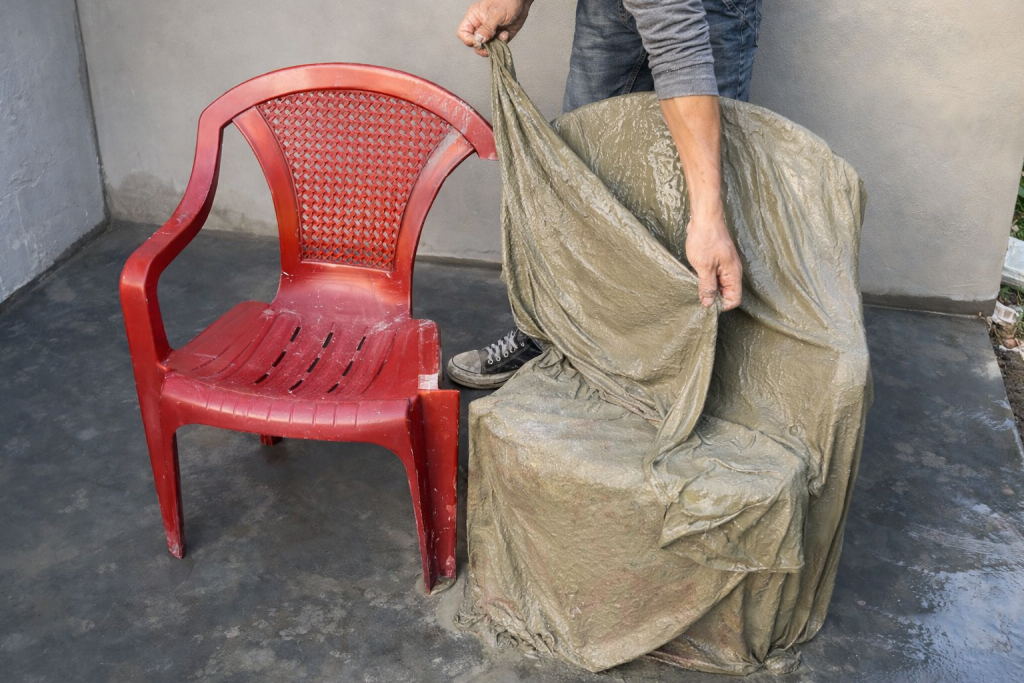 Η διαδικασία ξεκινά με τη συναρμολόγηση του σκελετού από τις παλιές καρέκλες. Αυτές λειτουργούν ως η δομική βάση πάνω στην οποία θα χτιστεί η υπόλοιπη κατασκευή. Είναι μια υπενθύμιση ότι με λίγη φαντασία, οτιδήποτε μπορεί να επαναχρησιμοποιηθεί.