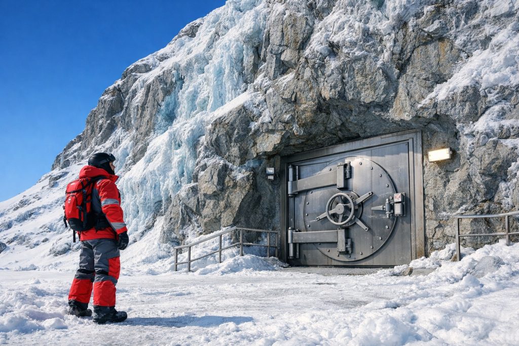 Το θησαυροφυλάκιο στην Αρκτική είναι «offline». Δεν είναι συνδεδεμένο με κανένα δίκτυο ή το διαδίκτυο. Αυτό σημαίνει ότι κανένας χάκερ δεν μπορεί να το αγγίξει. Είναι ένας απομονωμένος θύλακας που δεν επηρεάζεται από ψηφιακούς πολέμους.
