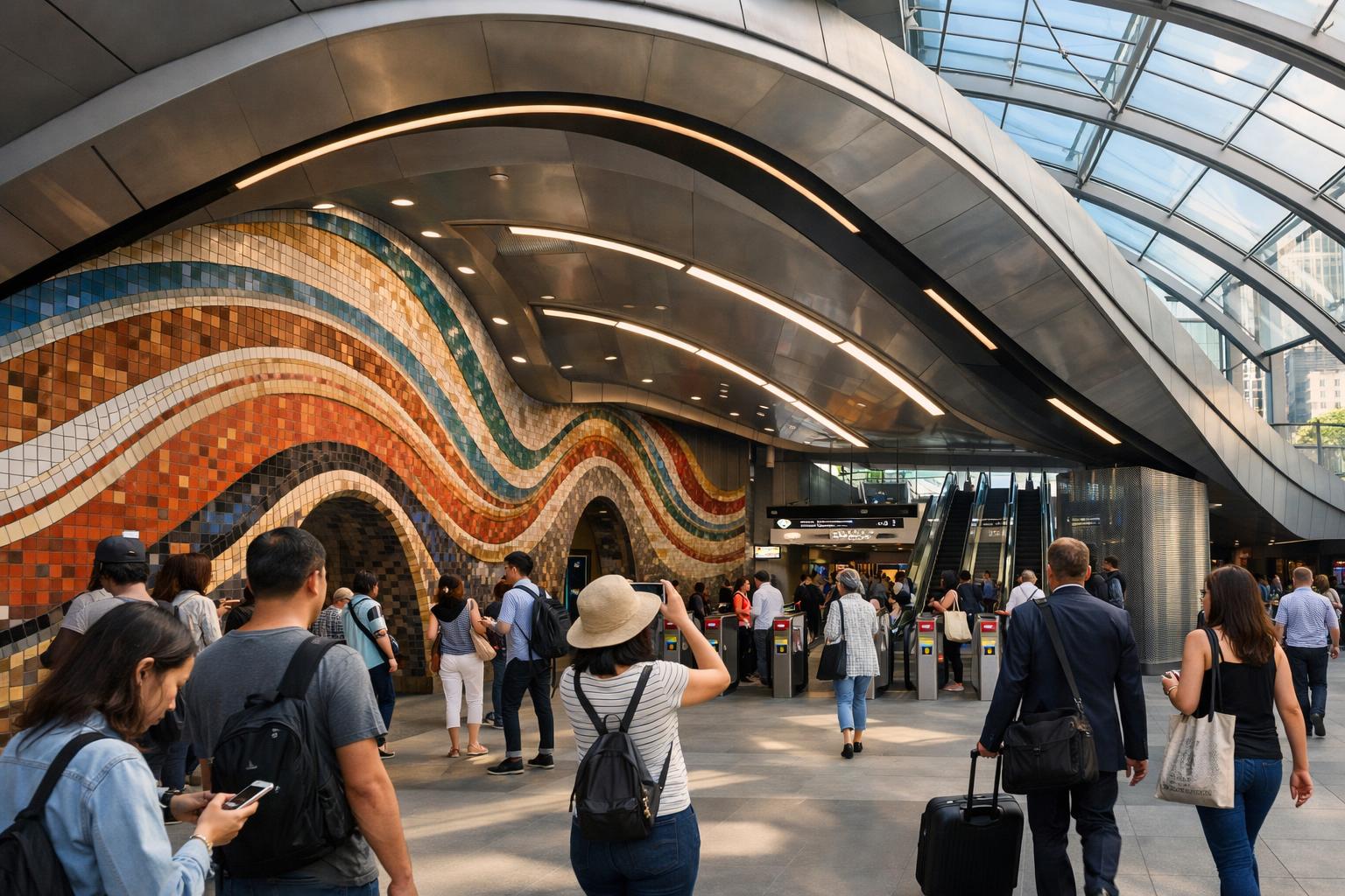 Ο σταθμός Gadigal στο Σίδνεϊ δεν είναι απλώς ο πρώτος σταθμός μετρό της πόλης. Είναι και ένα αρχιτεκτονικό στολίδι. Από την είσοδο κιόλας, σε υποδέχεται ένα πολύχρωμο έργο τέχνης με πλακίδια, εμπνευσμένο από την αυστραλιανή σιδηροδρομική ιστορία. Το όνομά του τιμά τους αυτόχθονες Gadigal, ενώ ο σχεδιασμός του είναι φουτουριστικός – με φωτιστικά που δημιουργούν την αίσθηση πως βρίσκεσαι σε καλλιτεχνική εγκατάσταση και όχι σε σταθμό.