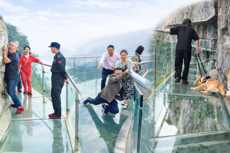 Μια ανάσα πάνω από το κενό Το βίντεο ξεκινά με εικόνες ενός γυάλινου γεφυριού που κρέμεται ψηλά ανάμεσα σε δύο…