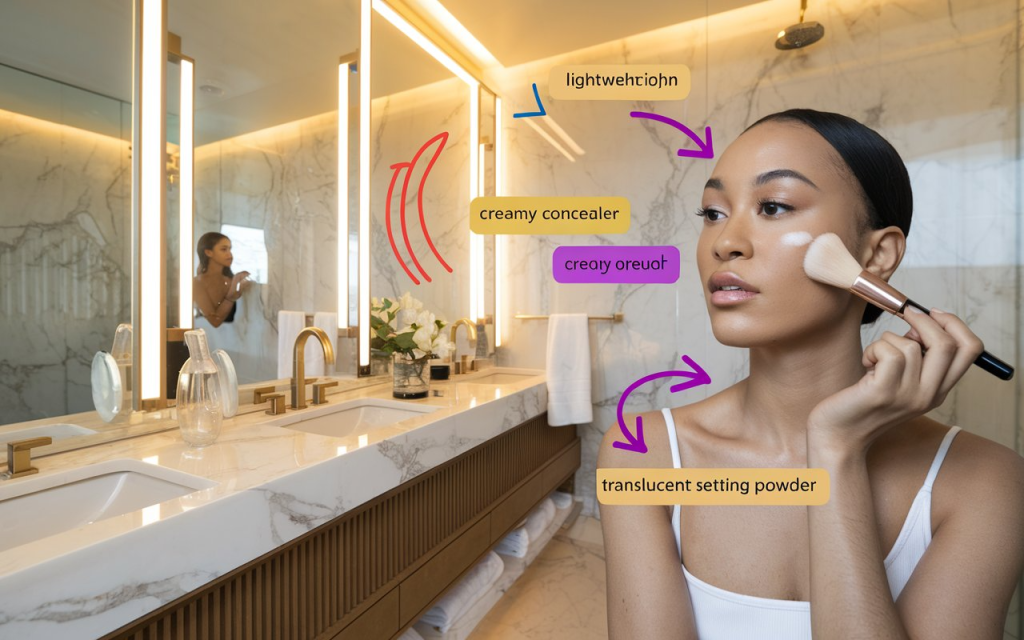 Η σωστή επιλογή προϊόντων και η προσεκτική εφαρμογή είναι το κλειδί. Χρησιμοποιήστε προϊόντα με καλή κάλυψη και ελαφριά υφή, και μην ξεχνάτε την προετοιμασία της επιδερμίδας πριν το μακιγιάζ.