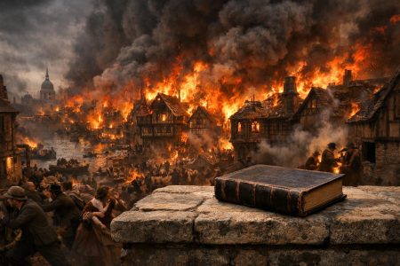 Η ιστορία πίσω από τη Βίβλο που επέζησε της Μεγάλης Πυρκαγιάς του Λονδίνου Σκεφτείτε την εικόνα: το Λονδίνο, το 1666,…