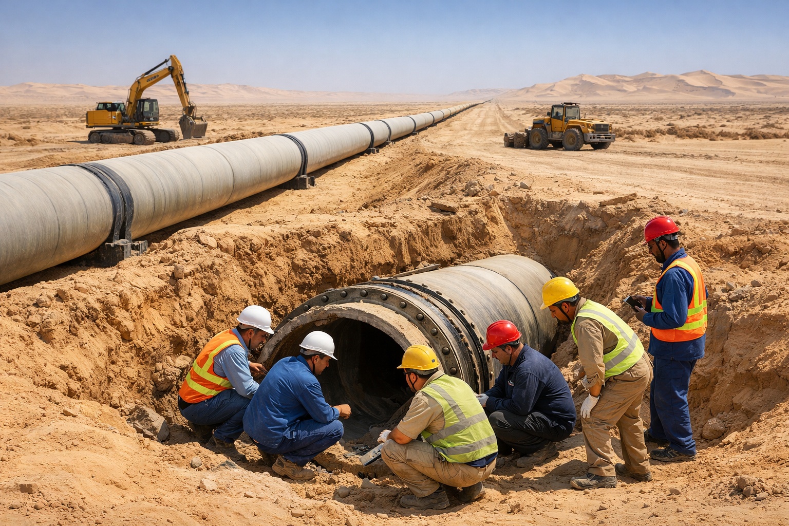 Οι μηχανικοί έπρεπε να αντιμετωπίσουν ακραίες θερμοκρασίες, αμμοθύελλες και δύσκολες γεωλογικές συνθήκες.