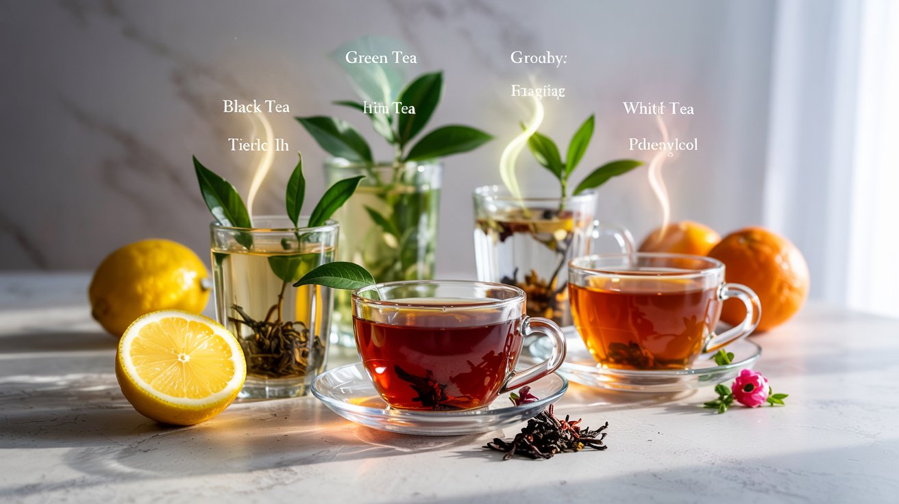 - Λευκό Τσάι: Το πιο αρωματικό και λιγότερο επεξεργασμένο τσάι, με ήπια γεύση και υψηλή περιεκτικότητα σε αντιοξειδωτικά.