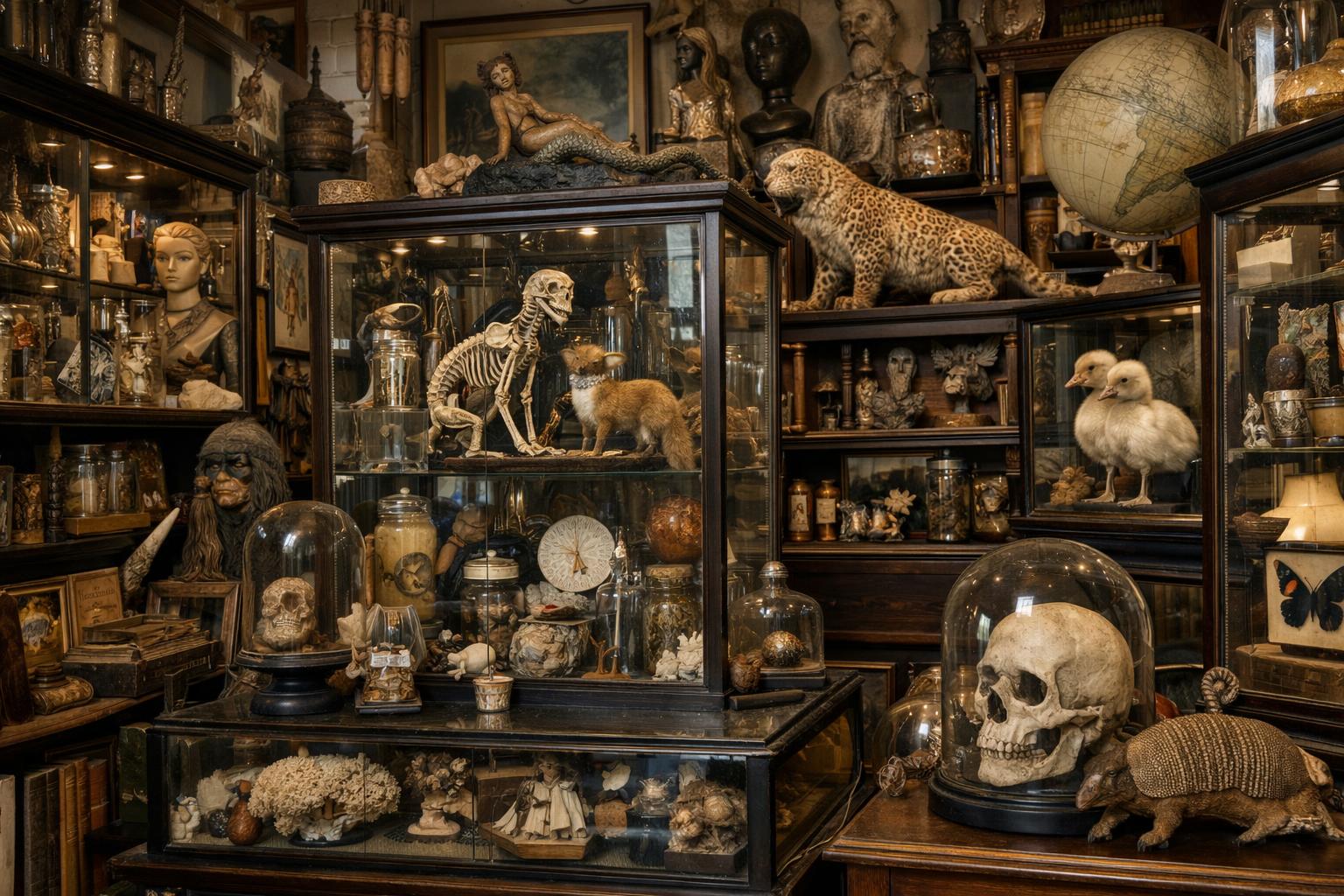 Με τα χρόνια, όμως, η συλλογή του άρχισε να ξεφεύγει από τα συνηθισμένα. Τα ράφια δεν έφταναν. Οι αποθήκες γέμιζαν. Φίλοι και γνωστοί τον παρότρυναν να μοιραστεί όλα αυτά τα «θαύματα» με το κοινό. Κάπως έτσι γεννήθηκε το oddities museum του Λονδίνου, ένας χώρος που μοιάζει βγαλμένος από κινηματογραφικό σύμπαν.